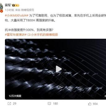 雷总还公布了一个消息:小米MIX Fold4采用的T800H全碳架构和小米龙骨转轴2.0,以及徕卡Summilux全焦段四摄,这次真是下了血本,舍得用这么高端的材料。我说实话,苹果要不还是宣布放弃造折叠屏手机好了。